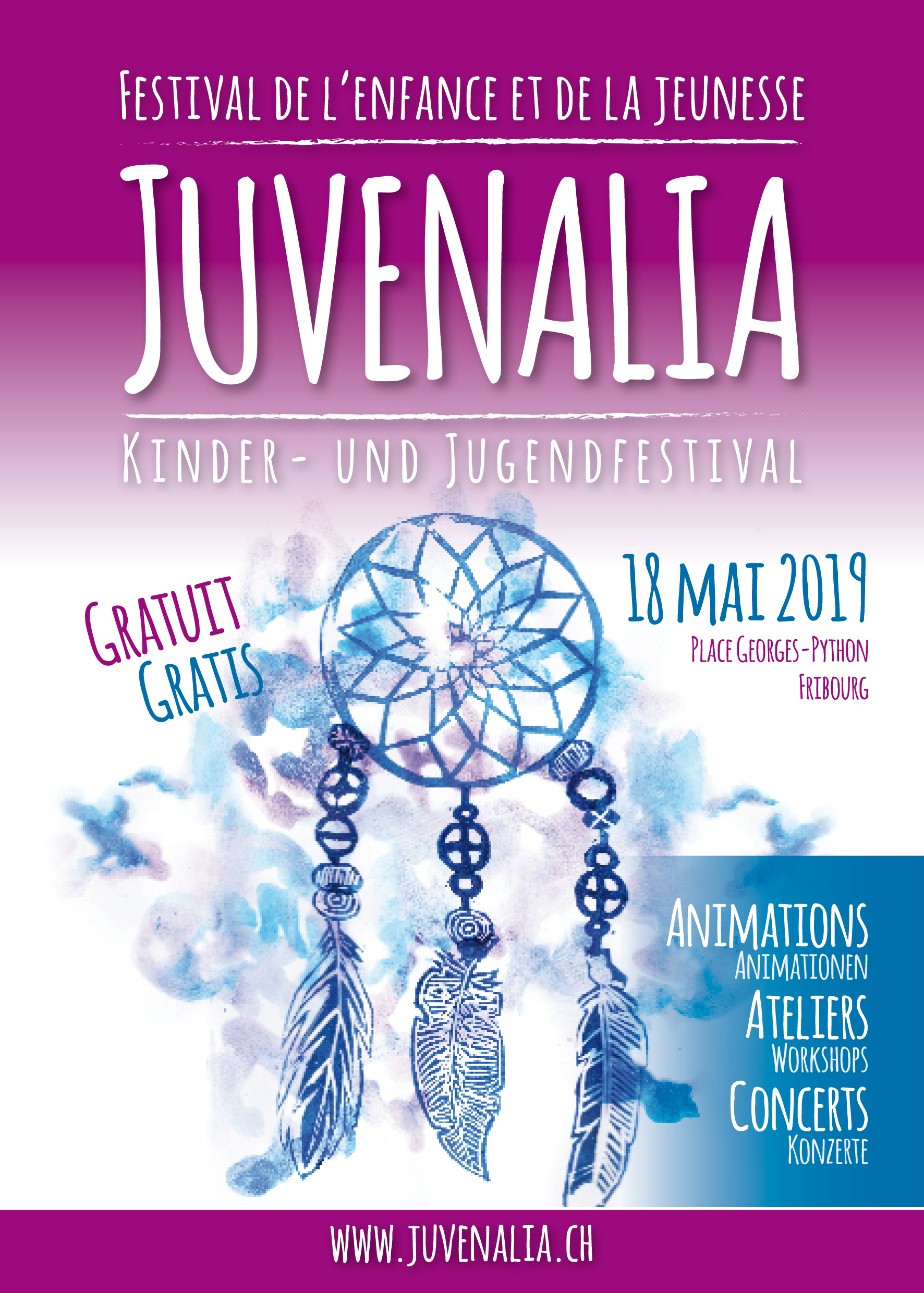 Die vierte Ausgabe des Festivals Juvenalia wird am Samstag den 18. Mai auf dem Georges-Python-Platz in Freiburg stattfinden. Das Organisationskomitee hat entschieden, dass die nächste Ausgabe ganz im Zeichen des TRAUMS steht. Das Thema verweist subtil auf das Universum der Möglichkeiten, als das man den Lebensabschnitt der Kindheit und Jugend typischerweise bezeichnen kann.